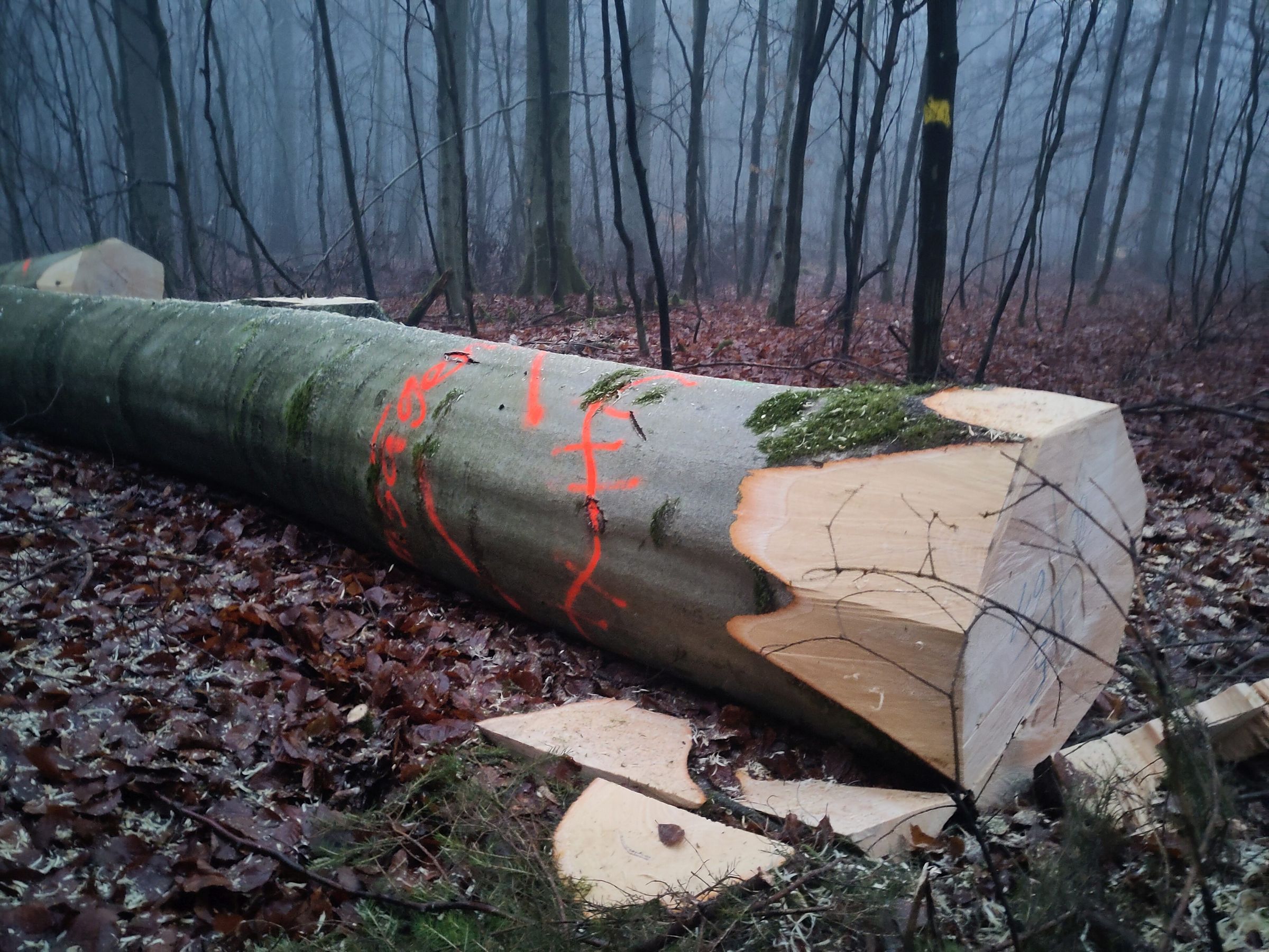 10 Jahre nach Aufhebung des Schutzgebiets „Hoher Buchener Wald“ im Steigerwald fallen wieder zahlreiche dicke Bäume der Säge zum Opfer. Statt die einzigartigen Laubwälder zu schonen, um das Waldinnenklima kühl und feucht zu halten und sie für kommende Generationen zu bewahren, heulen in Bayerns wertvollstem Staatswald wieder die Sägen.